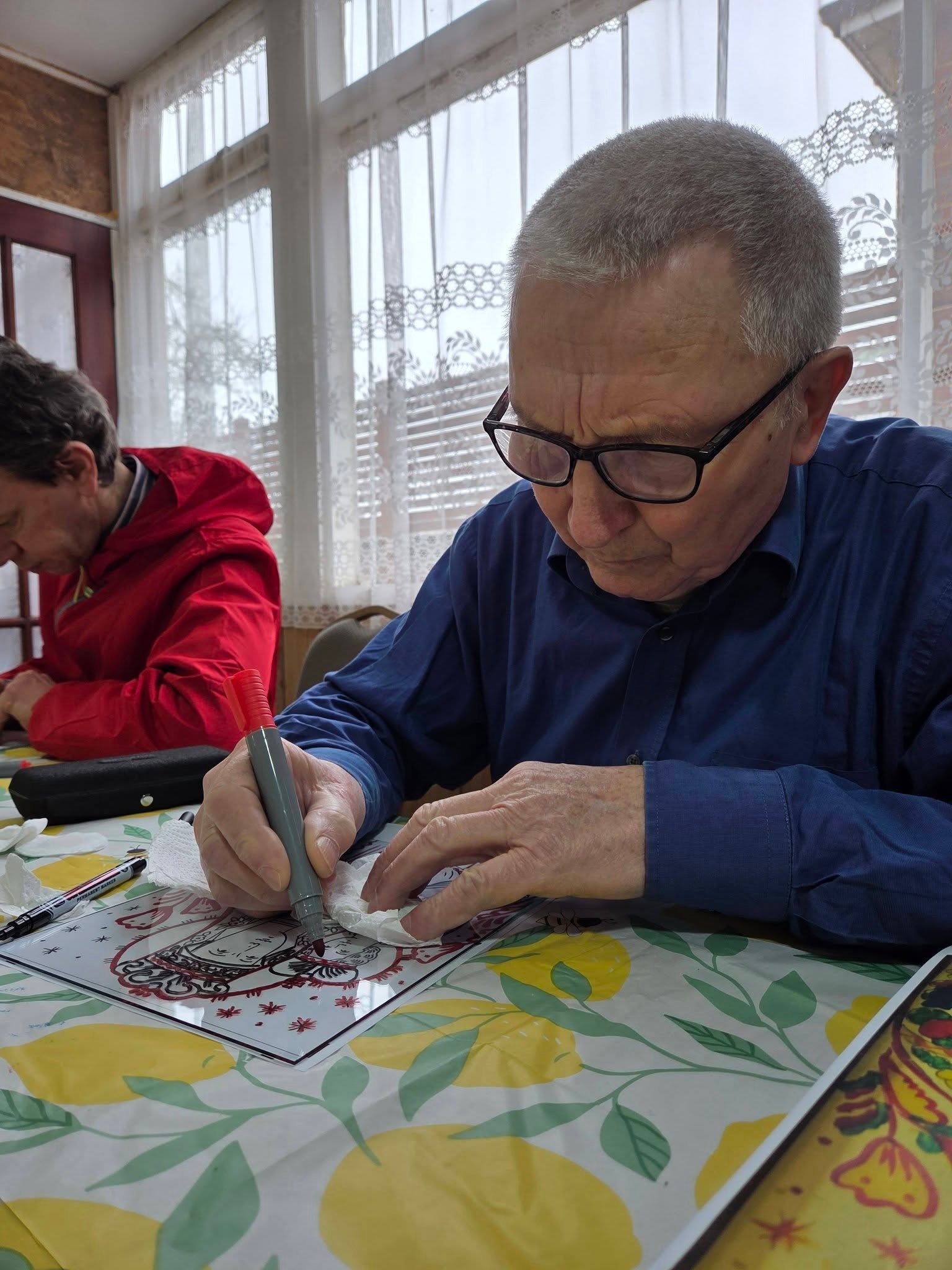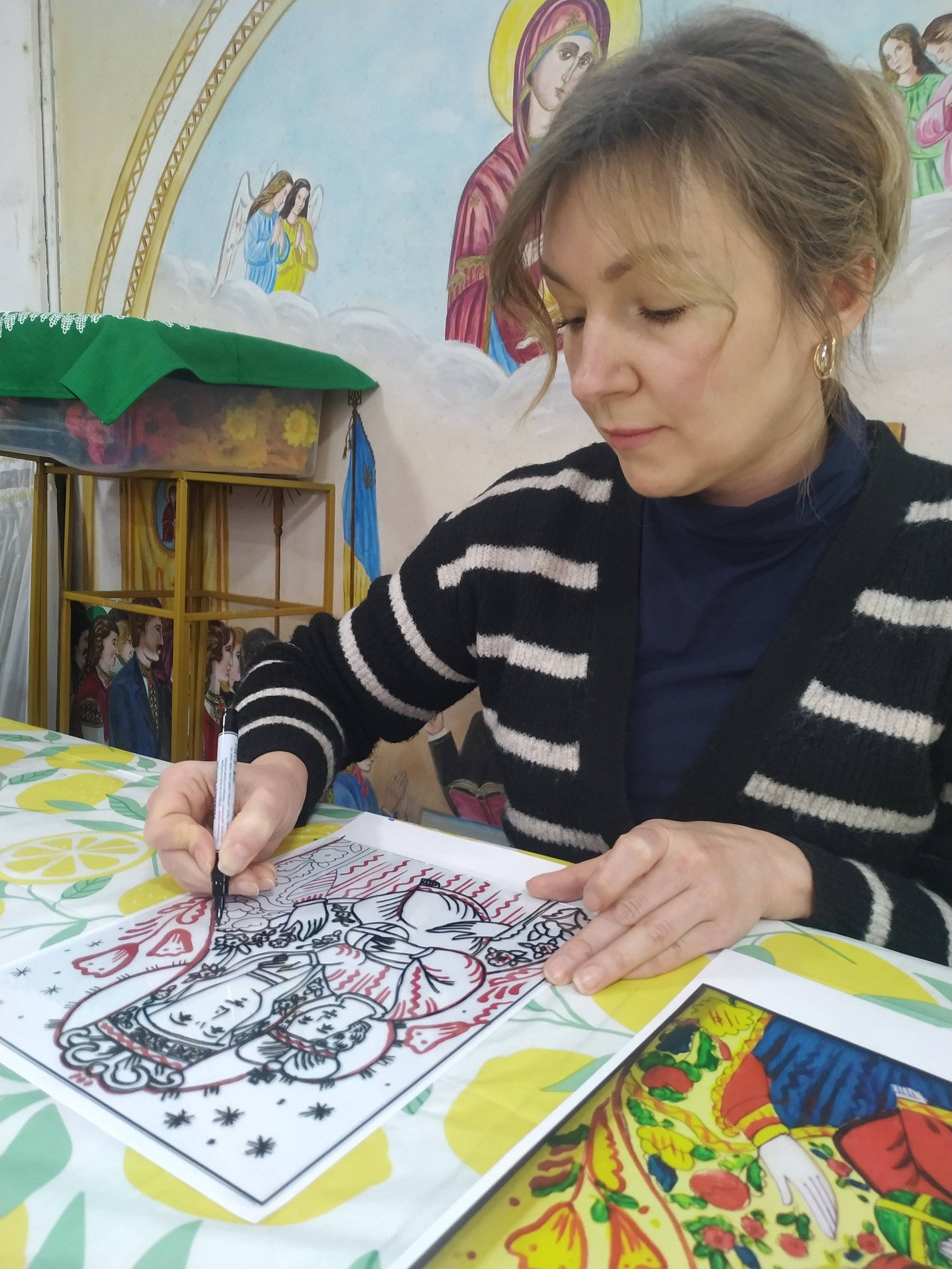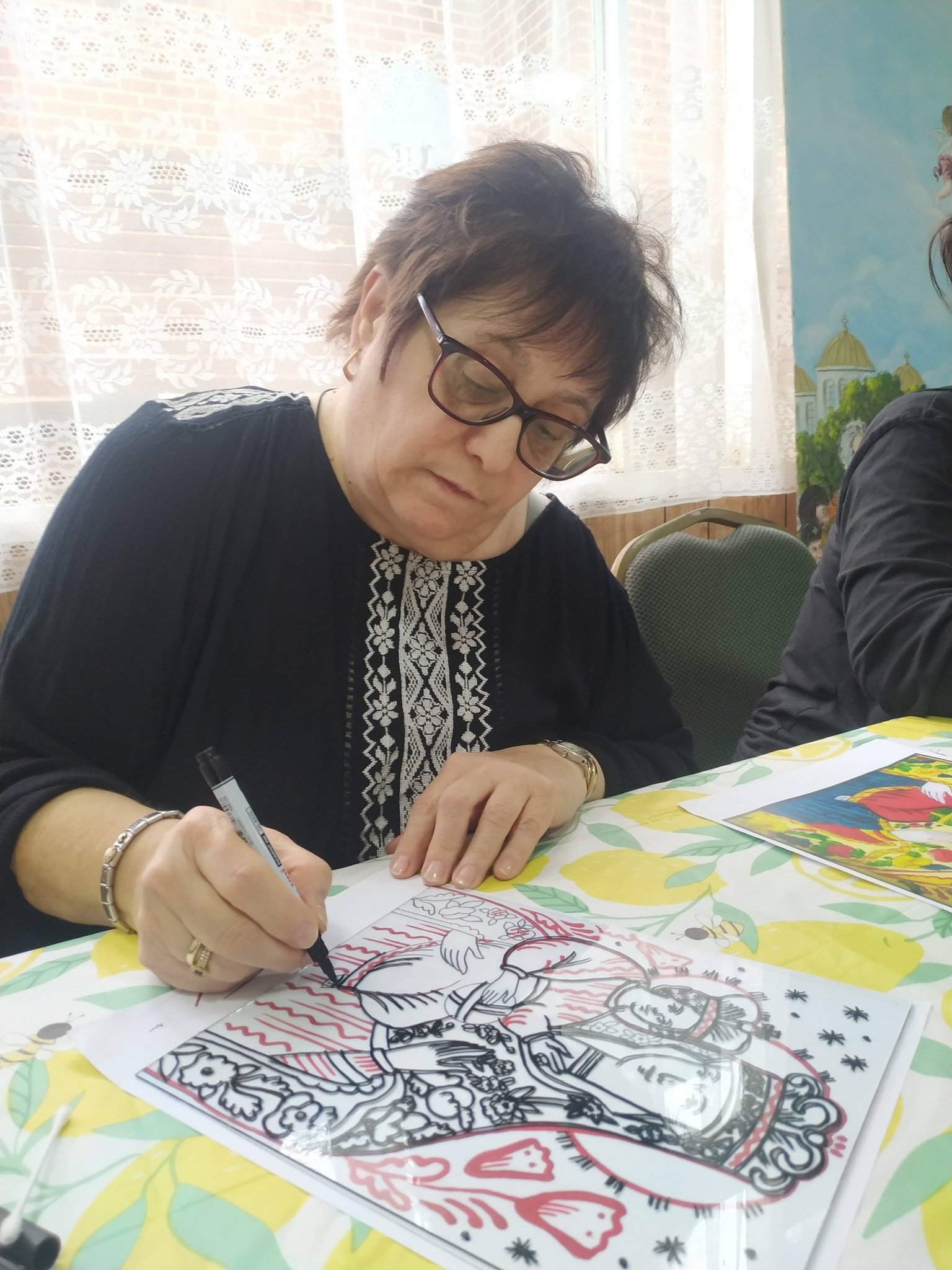 Майстер-клас провела іконописець п. Мар’яна Балтарович із Лестера, яка на початку представила змістовну презентацію про традицію іконопису, його символіку та духовне значення. Завдяки її фаховому і уважному супроводу учасники змогли не лише познайомитися з мистецтвом іконопису на склі, але й самі відчути радість творчого процесу.