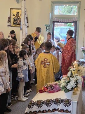 Молитовна служба стала особливою завдяки участі молодших членів організації “СУМ Ковентрі” та Української суботньої школи, які співали та передали іграшки, що будуть відправлені в Україну.
