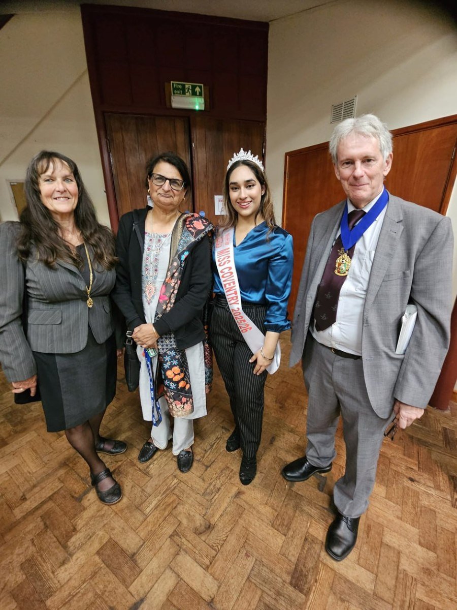 голова Товариства “Brits Desi” у Лестері Рішу Валіа, радник Рам Лакха, Міс Ковентрі 2025–2026 Шаран Сахота, Манджіт Каур (Служба освіти дорослих), Суріндер Бхамра (Сikh Union Coventry),